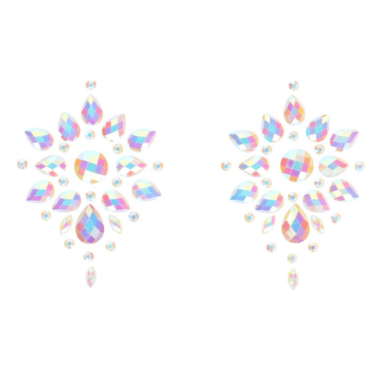 Красивые камни выполнены под опал и крепятся на кожу на клейкой основе.