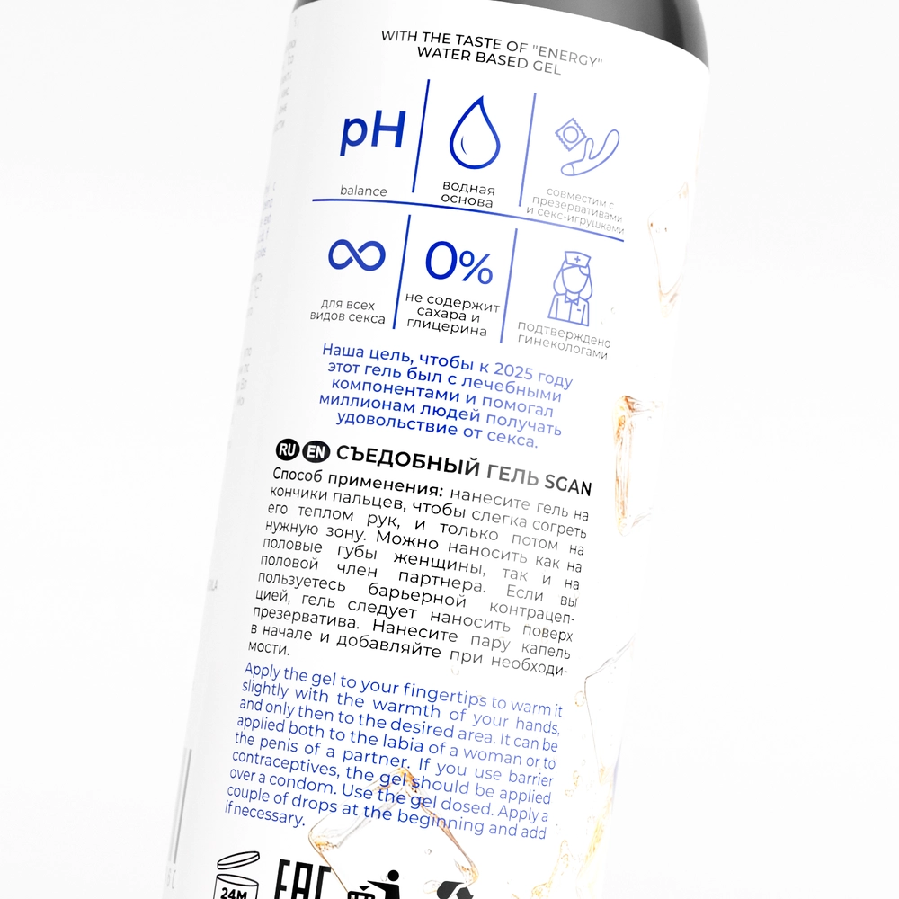 Лубрикант на водной основе “SGAN” со вкусом энергетик разработан сексологами в Нидерландах.Вкусовая линейка лубрикантов "SGAN" разработана с учетом физиологии, совмещает в себе вкус и аромат, при этом сохраняет все регенерирующие свойства классического лубриканта. Не оставляет липкости, без химического привкуса, не содержит сахара и калорий. Для сладости добавлен натуральный подсластитель - сукралоза. Абсолютно безопасен для проникновения и при проглатывании. Эксклюзивная густая формула обеспечивает лучшее обволакивание половых органов, тем самым гарантируя приятные ощущения без высыхания и обеспечивая экстра долгое скольжение. Благодаря исключительно высококачественным компонентам сохраняет естественный pH баланс слизистых, не вызывает жжения и неприятных ощущений.